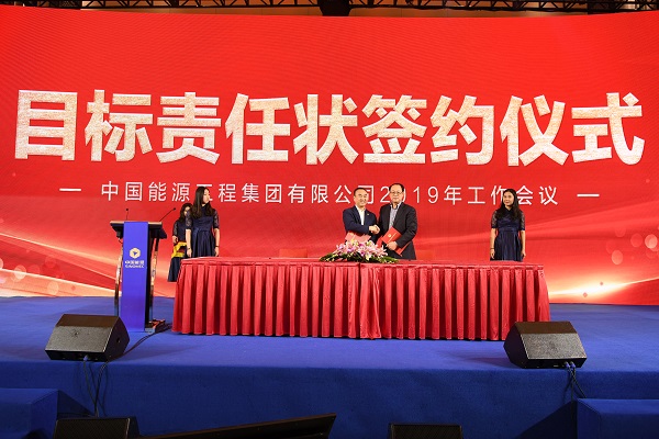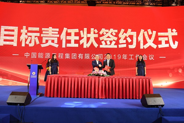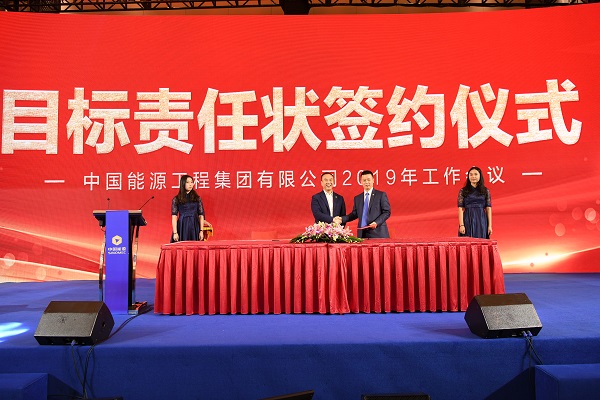 首在承諾,貴在監(jiān)督,重在落實(shí)。為推動(dòng)和保證集團(tuán)在接下來一年的規(guī)劃與愿景如期落地,中國能源工程集團(tuán)董事長劉斌與三大板塊主管領(lǐng)導(dǎo)簽署了2019年目標(biāo)責(zé)任狀,穩(wěn)扎穩(wěn)打推動(dòng)工作開展。