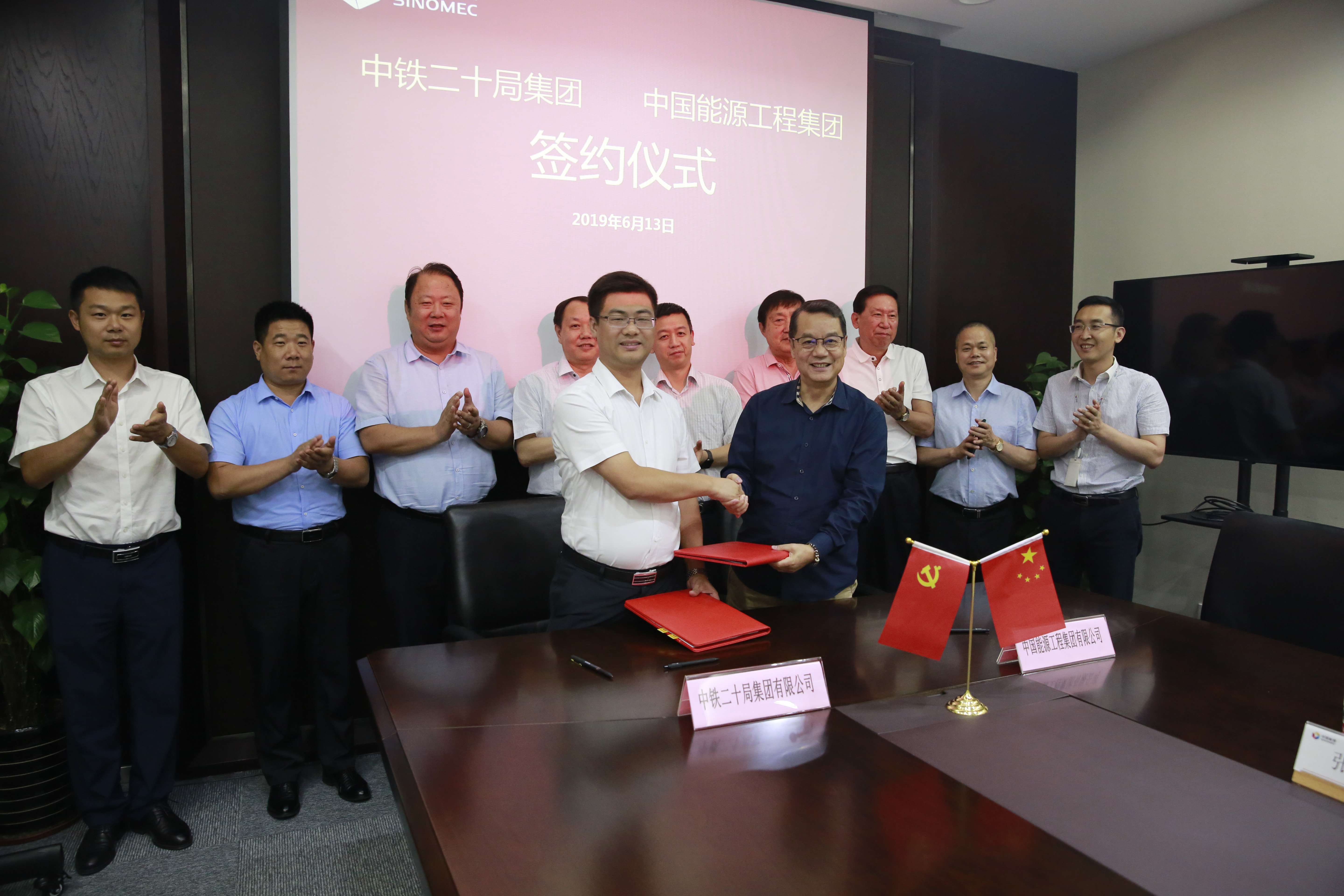 6月13日,中鐵二十局集團有限公司總經(jīng)理助理兼華東工程指揮部指揮長白建偉,中鐵二十局集團第三工程有限公司黨委書記、董事長任霄,黨委副書記、總經(jīng)理吳青華,副總經(jīng)理汪發(fā)安、范繼紅等領導蒞臨中國能源工程集團考察交流并簽署戰(zhàn)略合作協(xié)議。中國能源工程集團總經(jīng)理段玉林,副總經(jīng)理李楊等領導參加會議。
