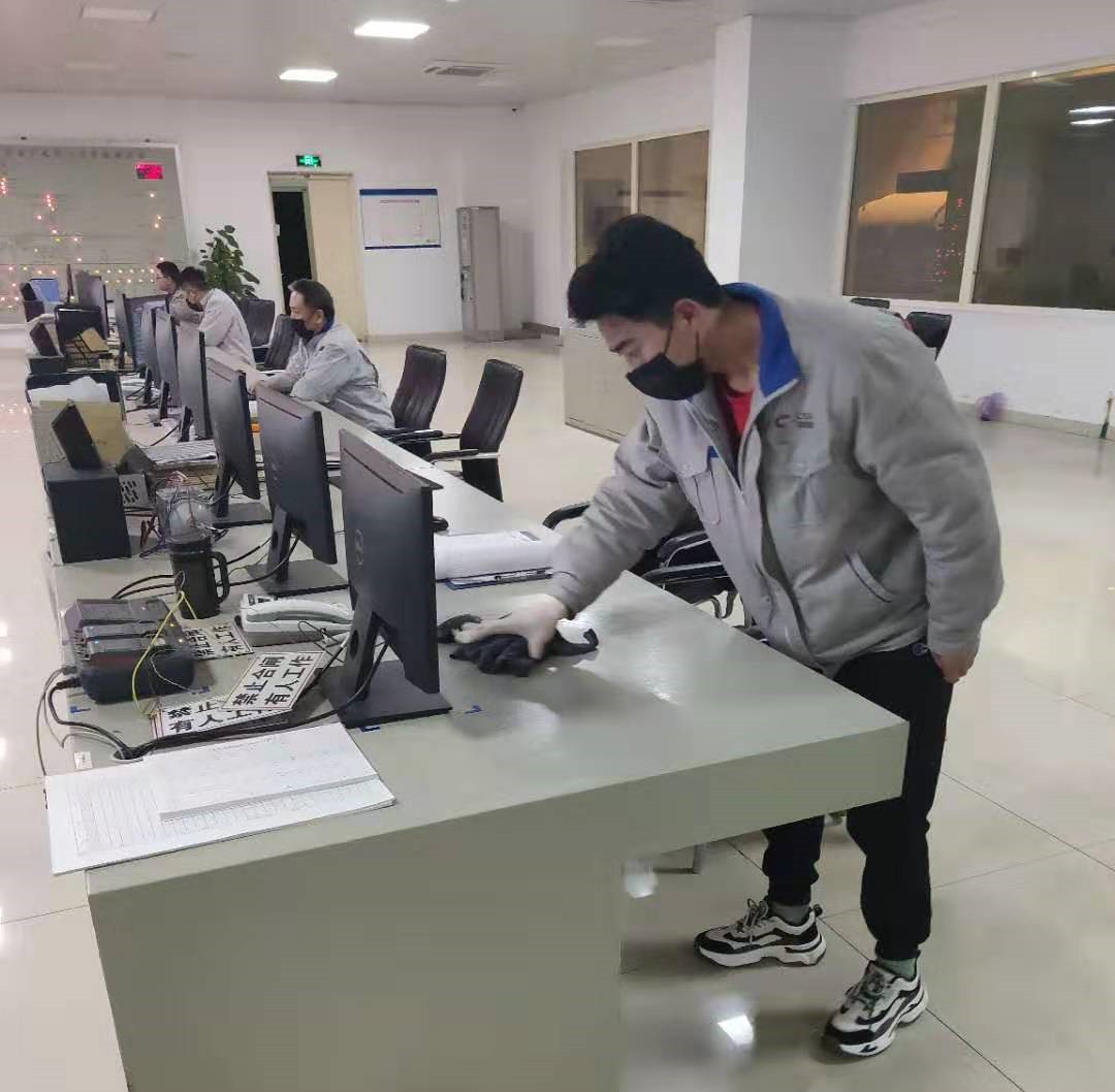 做好項(xiàng)目現(xiàn)場(chǎng)疫情防控工作是首要。當(dāng)面對(duì)各種防疫物資緊缺,購(gòu)買(mǎi)不到消毒液和醫(yī)用酒精時(shí),中機(jī)國(guó)能寧東熱電有限公司努力創(chuàng)造條件解決問(wèn)題。公司結(jié)合自身現(xiàn)有的生產(chǎn)用次氯酸鈉庫(kù)存,與其它化工企業(yè)協(xié)商借調(diào)酒精庫(kù)存,并邀請(qǐng)寧東公共衛(wèi)生中心專業(yè)人員按比例調(diào)配出符合要求的消毒液,最終廠區(qū)的衛(wèi)生安全得以有效保障。