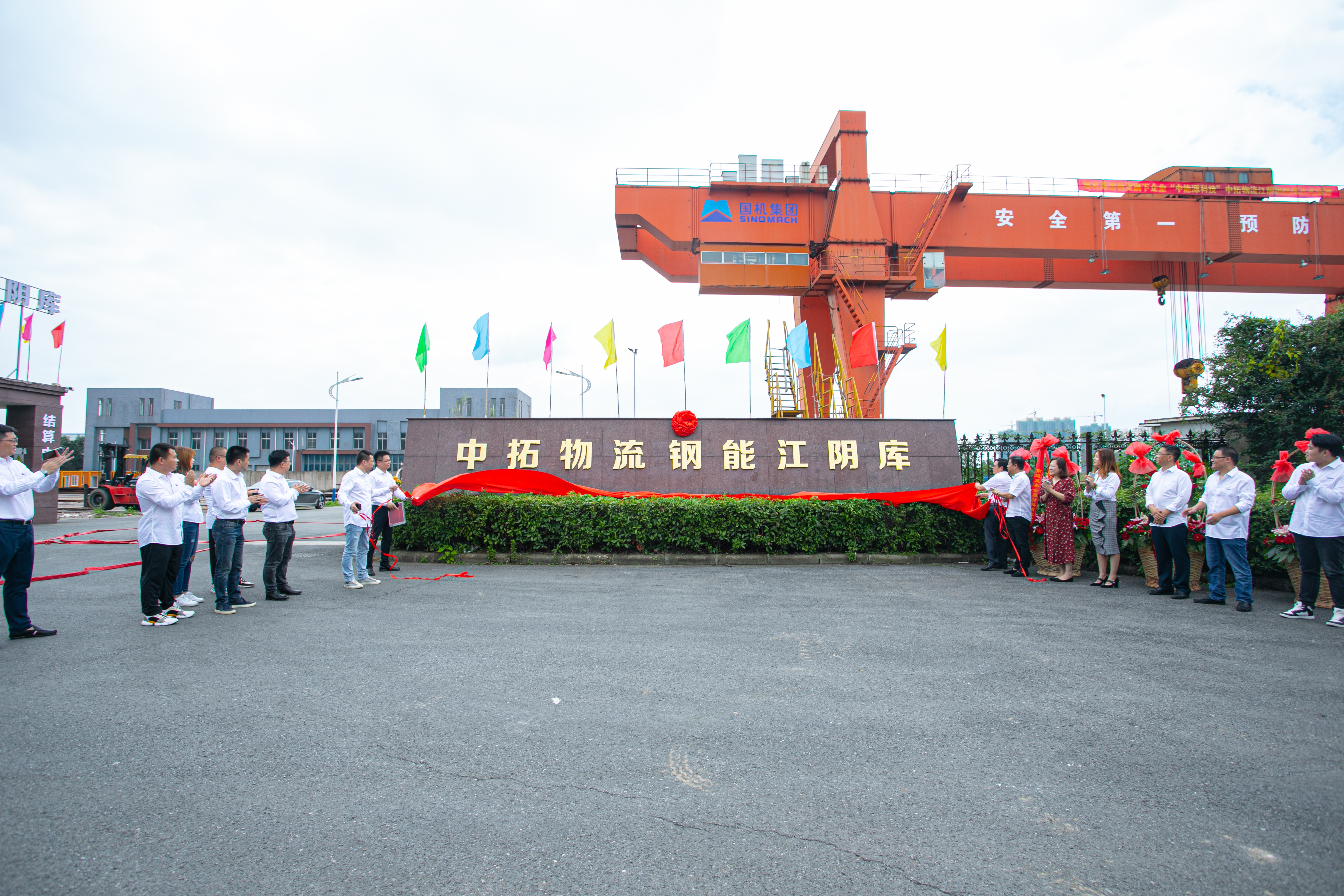 活動(dòng)現(xiàn)場(chǎng)秋風(fēng)送爽、花籃錦簇。伴隨著喜慶的禮花,120噸行車吊機(jī)緩緩攀升駛來。各級(jí)領(lǐng)導(dǎo)和各界嘉賓共同為“江蘇江陰鋼能庫”揭牌。本次揭牌儀式標(biāo)志著科技股份公司又一個(gè)有著三萬噸庫容能力,集鋼鐵貿(mào)易、倉儲(chǔ)、配送、金屬加工、商務(wù)服務(wù)于一體的綜合性倉儲(chǔ)基地正式對(duì)外運(yùn)營。