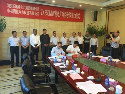 2015年6月9日,中機(jī)國能電力投資有限公司董事長(zhǎng)劉斌與潞安新疆煤化工(集團(tuán))有限公司董事長(zhǎng)崔樹江在新疆哈密市哈密賓館正式簽署了2×350MW熱電項(xiàng)目投資協(xié)議,新疆哈密地委副書記、行署專員芒力克.斯依提出席簽約儀式并講話。芒力克.斯依提專員對(duì)該項(xiàng)目寄予很深的厚望,同時(shí)提出哈密市地委、行署將竭盡全力為中機(jī)國能電力投資有限公司在新疆的發(fā)展提供優(yōu)質(zhì)高效服務(wù),同時(shí)希望項(xiàng)目在協(xié)議簽署后能夠抓緊時(shí)間開工建設(shè),盡快投產(chǎn)發(fā)揮經(jīng)濟(jì)和社會(huì)效益,劉斌董事長(zhǎng)也提出在該項(xiàng)目上要?jiǎng)?chuàng)新、創(chuàng)優(yōu)、機(jī)組的建設(shè)周期名列同類機(jī)組前茅。