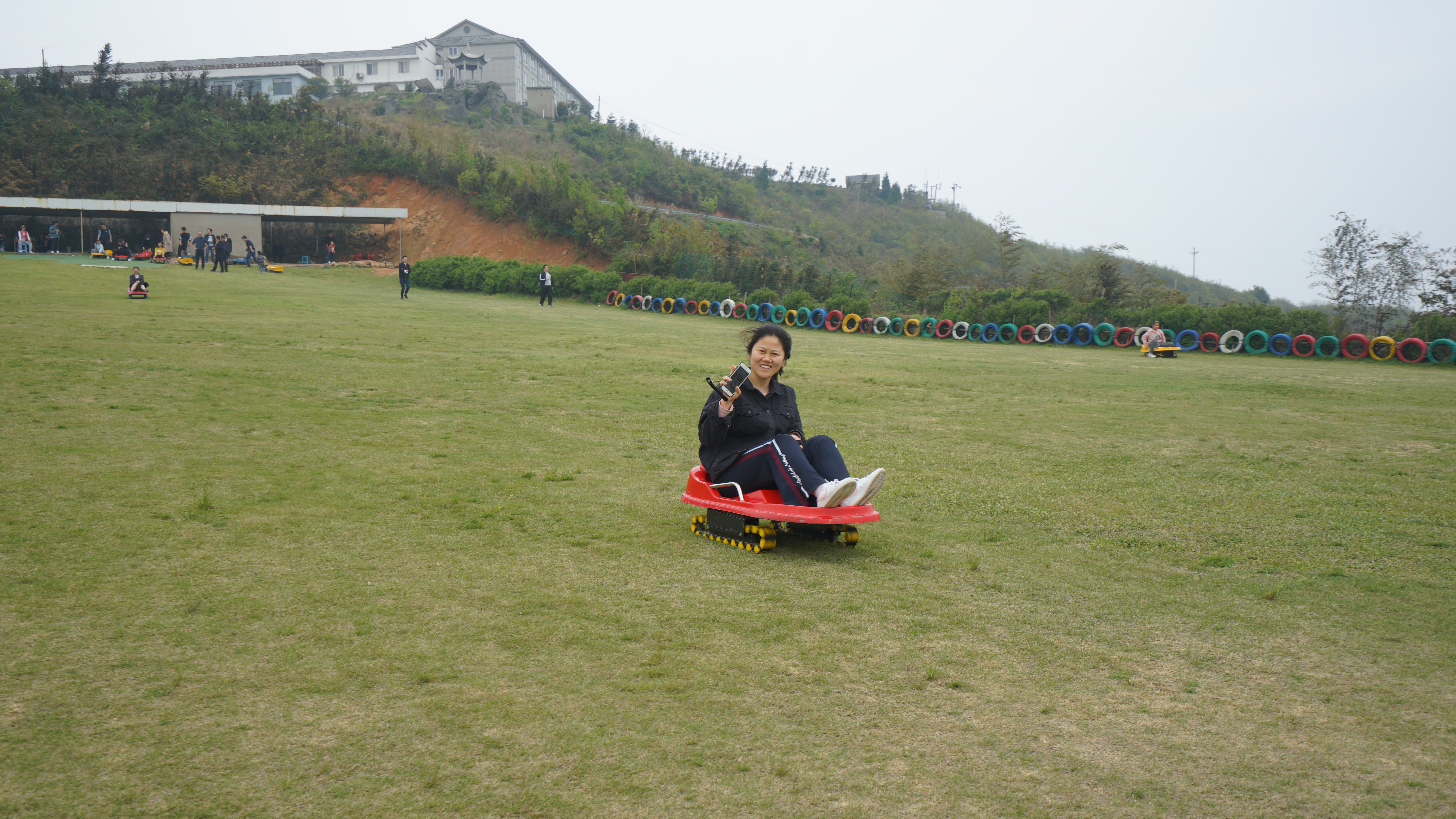 結(jié)束驚險的石浪挑戰(zhàn),小伙伴們前往附近的滑草場,體驗滑草帶來的風(fēng)馳電掣。小伙伴們懷著緊張雀躍的心情,坐上滑板車,舒展雙腳,拉緊繩子,一鼓作氣地從上坡沖下,耳邊聽到的是呼呼的風(fēng)聲,還有大伙兒高興的歡笑聲。