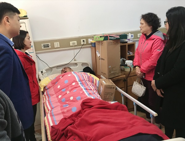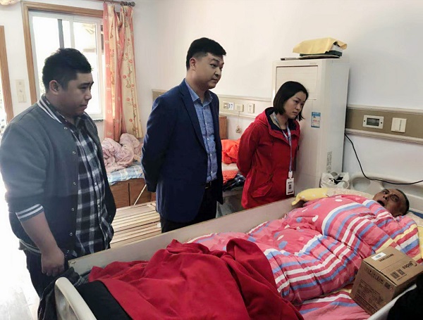 11月20日,在宜川街道黨建中心和華陰居委會領(lǐng)導的帶領(lǐng)下,集團青年代表們前往老人住處,送上料理機和水果的同時也帶去了集團黨團青年們誠摯的問候與祝福,鼓勵他配合治療,堅持康復訓練,相信不久的將來一定可以重新站起來。病床上的鐘叔叔雖然不能說話,卻多次激動地留下眼淚。