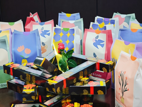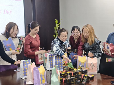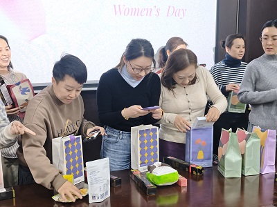 活動(dòng)現(xiàn)場(chǎng),每位女職工都收到了一支象征甜蜜的巧克力玫瑰花,并親手抽取了一份神秘盲盒禮物。未知的驚喜讓大家歡笑不斷,紛紛拍照留念,現(xiàn)場(chǎng)氣氛溫馨熱烈。